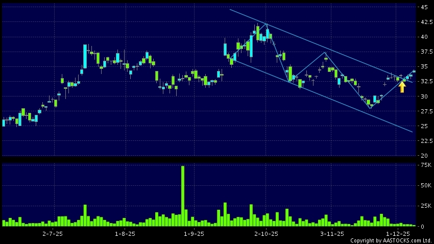 區域突破指股價在過去的一段時間只在一個範圍在內活動,然後股價上升作出突破,升穿區域的頂部,技術走勢向好。(港股報價延遲最少十五分鐘。沽空資料截至 2025-12-08 16:25。)
